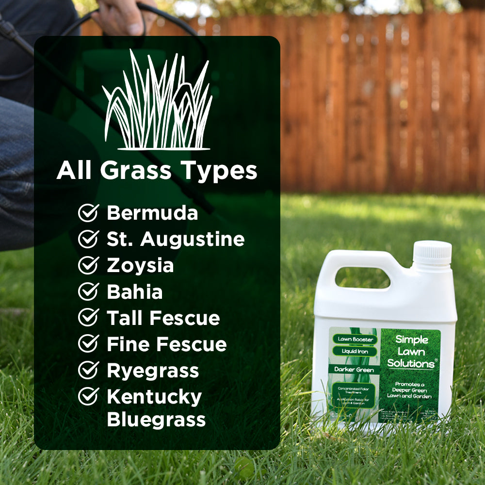 • Can be Used on All Grass Types: Iron and Micronutrient fertilizer for Bermudagrass, Saint Augustine, Zoysia, Centipedegrass, Bahia, Kentucky Bluegrass, Perennial Ryegrass, Tall Fescue/Fine Fescue