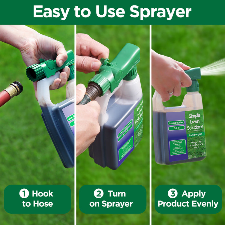 Hose-end Sprayer 16-4-8 NPK Lawn Food Fertilizer, 28-0-0 High Nitrogen Lawn Food Fertilizer, and Lawn Energizer 6-0-0 Nitrogen, Iron, and Micro Nutrient Lawn Fertilizer by Simple Lawn Solutions
