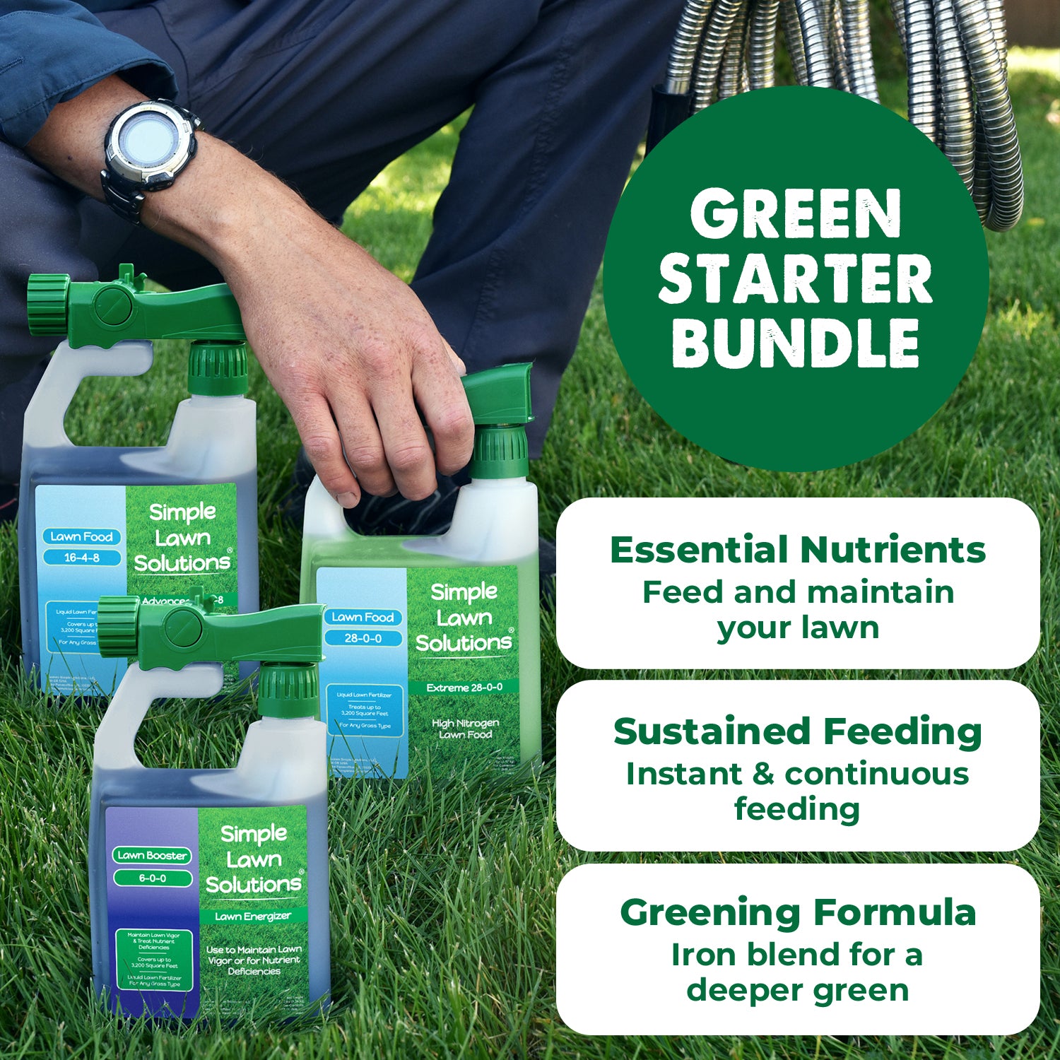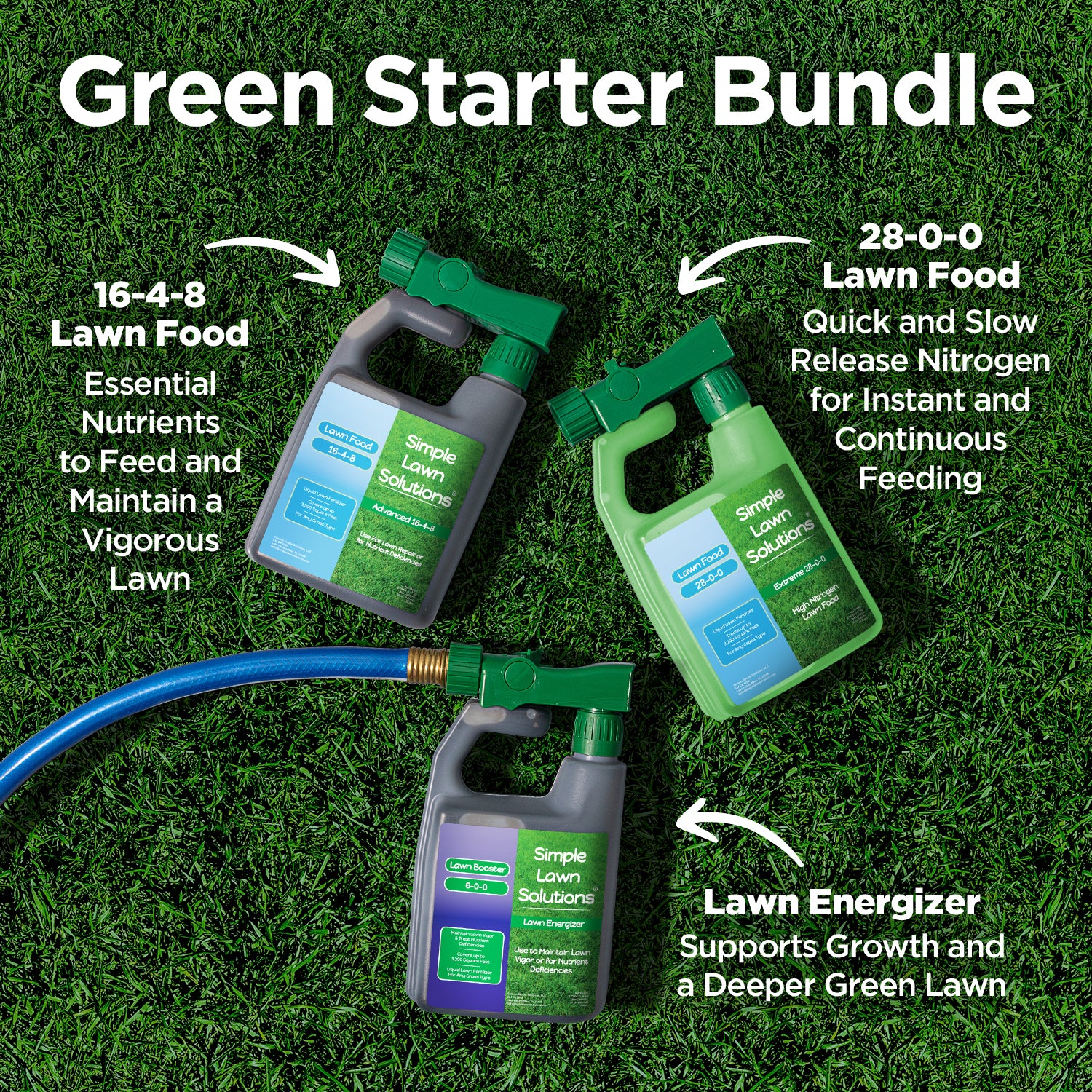 • Green Starter Fertilizer Bundle contains: 16-4-8 Advanced Lawn Food, Lawn Energizer, and 28-0-0 High Nitrogen Lawn Food.