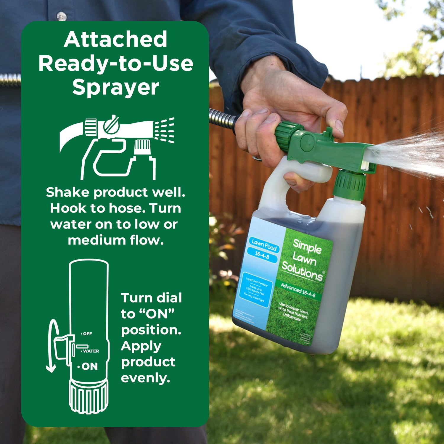 Hose-end Sprayer 16-4-8 NPK Lawn Food Fertilizer, 28-0-0 High Nitrogen Lawn Food Fertilizer, and Lawn Energizer 6-0-0 Nitrogen, Iron, and Micro Nutrient Lawn Fertilizer by Simple Lawn Solutions