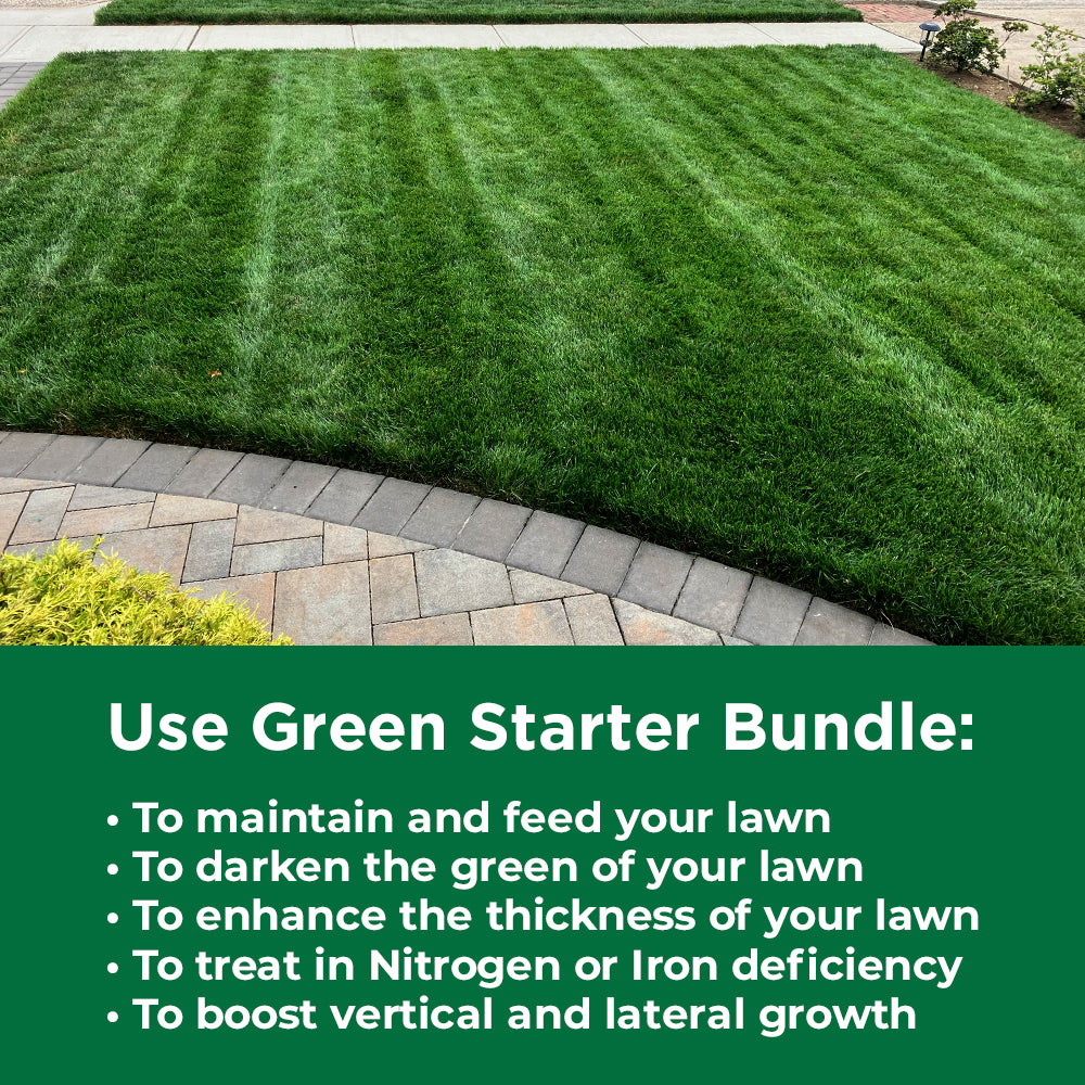 Kick off your lawn goals with our Green Starter Fertilizer Bundle. Includes three ready-to-use liquid fertilizers to provide key nutrients for maximum top green and growth and a vigorous lawn.