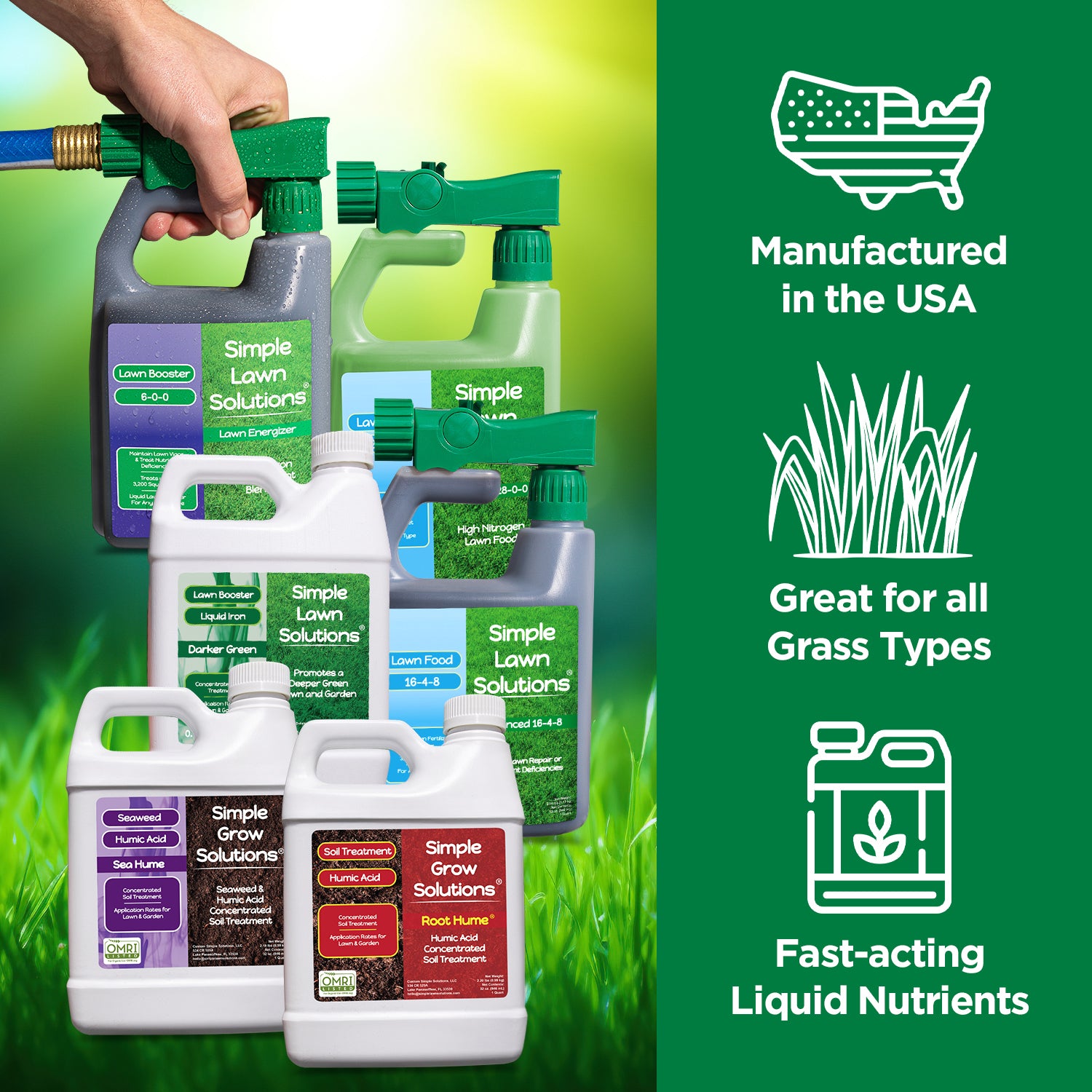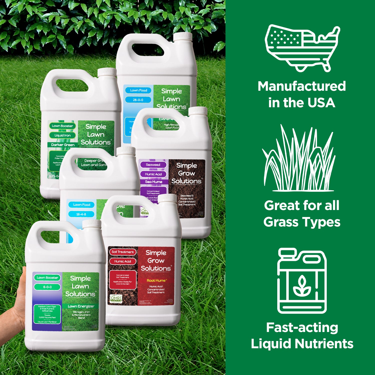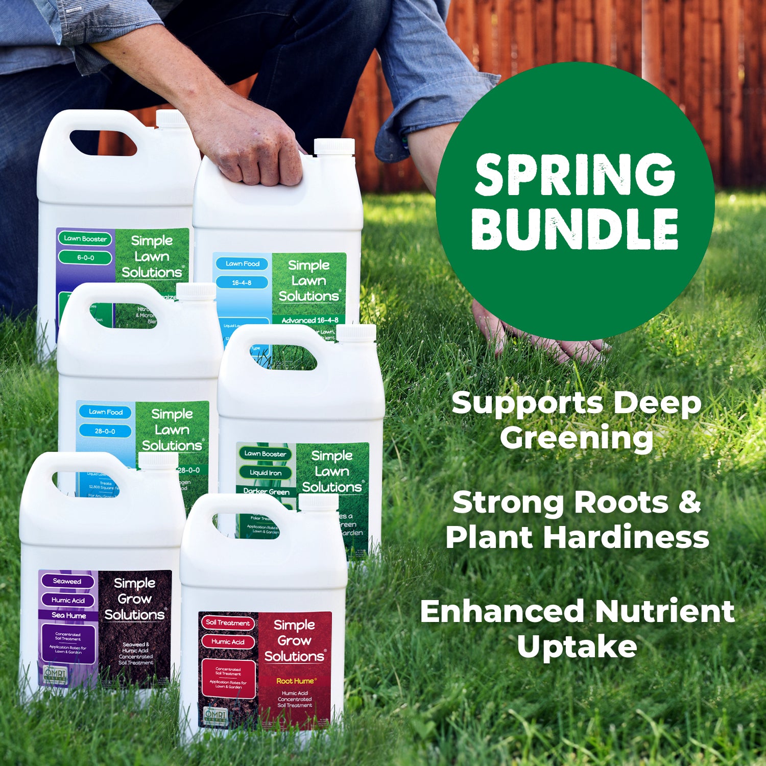 • The Large Spring Bundle contains: 16-4-8 Advanced Lawn Food, Darker Green Liquid Iron, Lawn Energizer, Root Hume, and Sea Hume