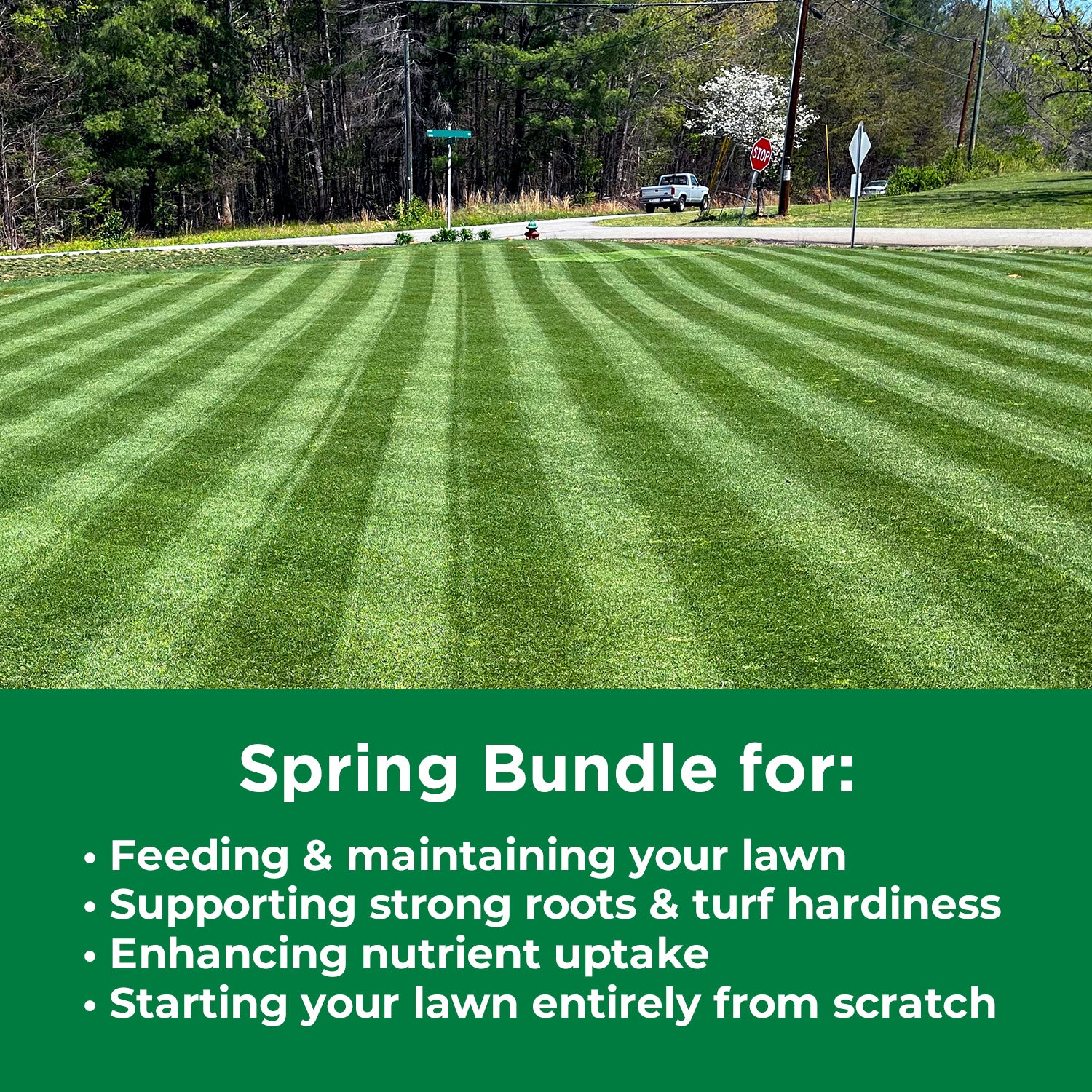 Our Large Spring Bundle provides a large selection of key nutrients for top green and growth while providing essential ingredients for turf vigor and nutrient uptake.